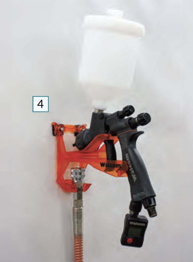 Magnetic holder for spray guns with gravity cups. Can also be affixed to non-ferrous surfaces using supplied screws.- €86,58