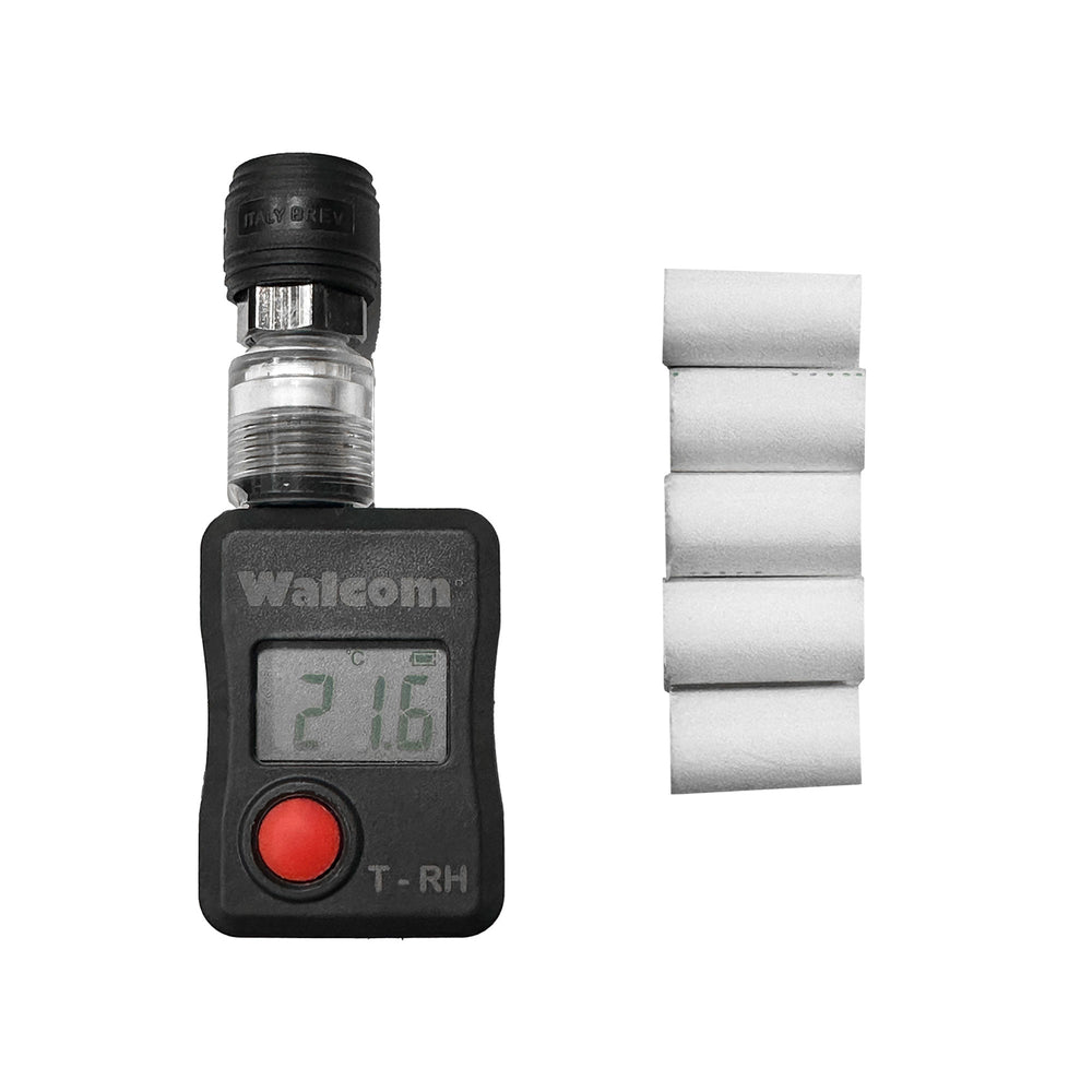 Device, allows you to detect the air temperature, the dew point and the level of rel. humidity. Furthermore, a small filter is inserted to trap oil contamination, protect the sensor and it's easy to check and understand the level of impurities present.