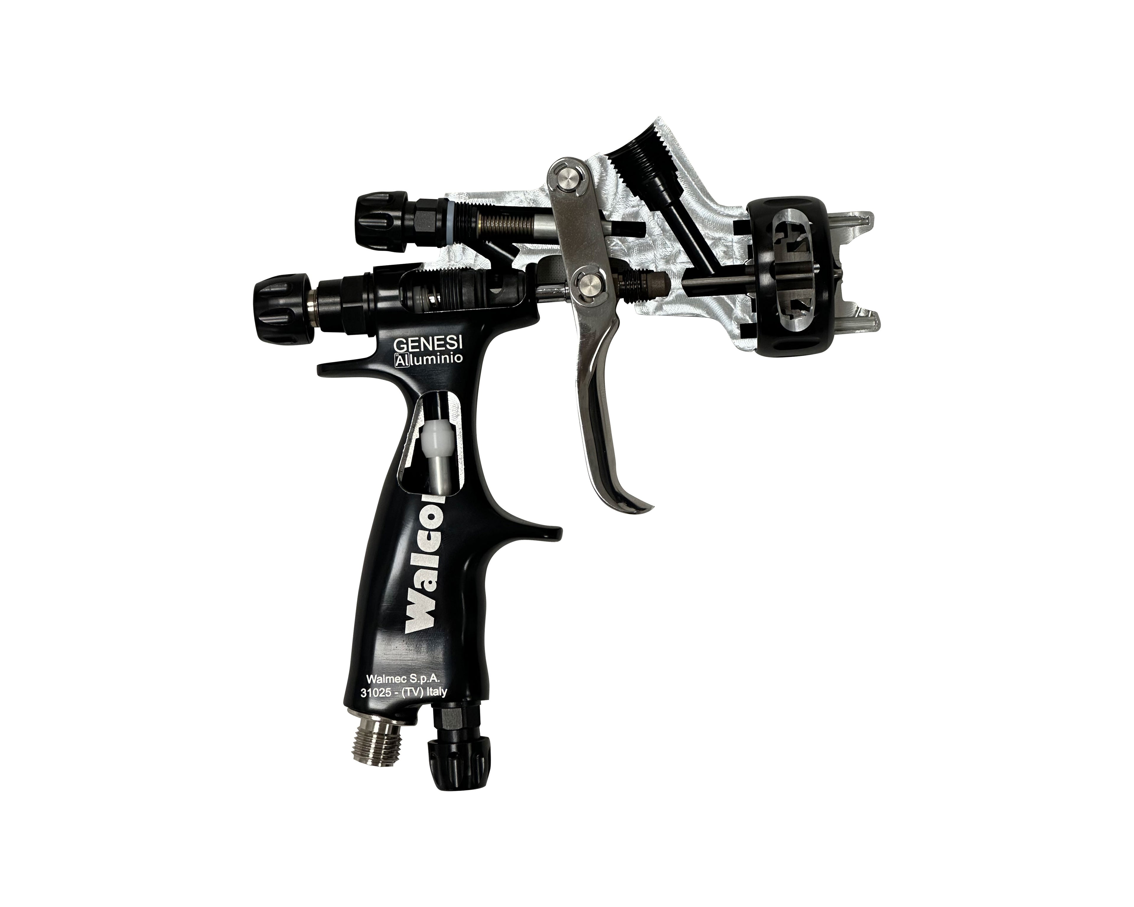 The performance level of the GENESI line in the traditional anodized ALUMINUM version. Extremely light (only 415 g), easy to handle and ergonomic, it is an ecological spray gun and resistant to any solvent. Easy to use and clean, it is available in the versions for base HALO (High Atomization Low Overspray) BASE - HVLP - GEO and for clear HALO (High Atomization Low Overspray) CLEAR.
